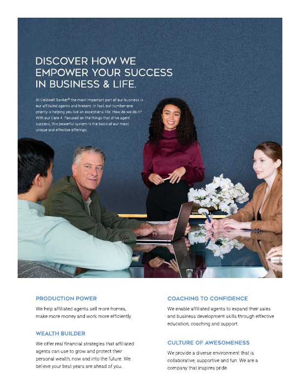 Your real estate business should not only support your present—it should also secure your future. Coldwell Banker’s Wealth Builder program offers practical financial education, wealth-building strategies, and tools to help real estate agents grow and protect personal wealth.